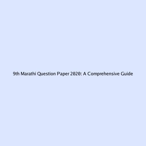 9th Marathi Question Paper 2020: A Comprehensive Guide