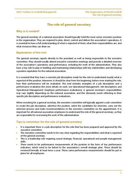 Assistant Secretary General: Key Responsibilities