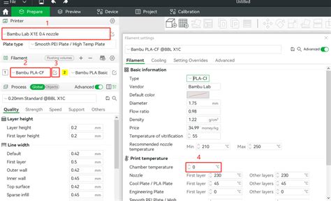 4. Choose Your Filament: Select the appropriate filament profile for the material you’re using (e.g., ABS, ASA, PC). These profiles usually have pre-set chamber temperature recommendations, so that is a good starting point.