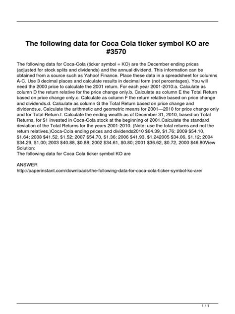 And there you have it, folks! The stock ticker symbol for The Coca-Cola Company on the New York Stock Exchange is KO . This seemingly simple two-letter code is your essential tool for accessing everything you need to know about investing in one of the world’s most beloved brands. From researching its market performance to placing trades, KO is the key. Understanding ticker symbols is a foundational skill for any investor, and Coca-Cola’s KO symbol is a prime example of how these codes become deeply intertwined with the companies they represent. It’s a symbol of global reach, brand recognition, and long-term stability. So, whether you’re a seasoned investor looking to add a stable dividend stock to your portfolio or a beginner curious about how to start investing, remembering the Coca-Cola NYSE stock ticker symbol is your first step. Happy investing, and remember to always do your own research!