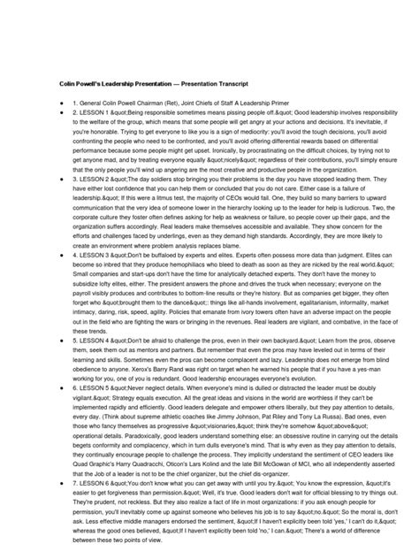 Ah, the ‘too busy’ trap. We’ve all been there, right? ‘Avoid the ‘too busy’ trap’ is Powell’s way of saying that leaders need to be accessible and present. When you’re constantly buried in tasks and constantly claim to be too busy to talk, meet, or engage, you create a barrier between yourself and your team. This makes people feel unimportant, unsupported, and less likely to come to you with problems or ideas. True leaders make time. They prioritize interaction, listening, and being available to their people. This doesn’t mean you have to be at everyone’s beck and call 24 7 , but it does mean making a conscious effort to allocate time for genuine connection and support. Powell, despite his demanding roles, always seemed to have time for people. He understood that leadership is fundamentally about relationships, and you can’t build strong relationships if you’re perpetually unavailable. This principle is about making yourself accessible and showing your team that their concerns and contributions matter. It’s about proactive communication and being visible, not just when there’s a crisis, but in the day-to-day operations. When you’re approachable, your team is more likely to bring you issues early, when they are still manageable, and they’ll feel more empowered to contribute their best work. So, guys, let’s consciously make time for our people. Look at your schedule. Are there pockets of time you can dedicate to informal check-ins, listening sessions, or just being present? Being ‘too busy’ is often a choice, not an inevitability. Choose to be present, choose to be available, and choose to build those vital connections.