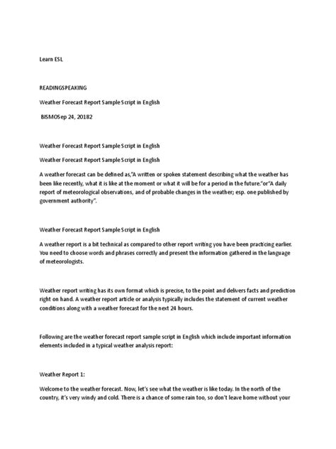 Okay, so we’ve covered accuracy and structure, but what really makes a weather report script memorable? It’s personality, guys! Weather can be dry and technical, but your script is your chance to bring it to life. Think about your tone. Are you naturally upbeat? Serious? A little bit quirky? Let that shine through in your writing. Using engaging language is key. Instead of just stating facts, use descriptive words. Describe a “crisp autumn morning” or a “muggy, oppressive afternoon.” You can use analogies that people understand. For example, you might say, “The heat today will feel like stepping into a sauna,” or “The wind will be strong enough to whip your umbrella inside out .” These vivid descriptions help your audience visualize the weather and connect with it on a personal level. Humor can also be a great tool, but use it wisely. A lighthearted joke about needing sunglasses for a blindingly sunny day is usually safe. Avoid anything that could be misinterpreted, especially when discussing serious weather. Asking rhetorical questions can also boost engagement. “Planning a picnic this weekend? You’ll want to hear this forecast!” or “Feeling that chill in the air? Here’s why…” This draws the audience in and makes them feel like you’re talking directly to them. For broadcast, think about how your script will sound when spoken. Read it aloud as you write. Does it flow naturally? Are there any awkward phrases? Varying your sentence structure can make it more dynamic. Short, punchy sentences can emphasize important points, while longer sentences can provide more detail. If you’re on TV, your script should complement the visuals. Mention what’s on the map. “As you can see on our radar, those showers are currently moving southwest …” This creates a seamless experience for the viewer. And don’t forget a strong closing that reinforces your unique style. A signature catchphrase or a warm sign-off can make you and your reports instantly recognizable. Remember, the goal is to be informative and entertaining. Your personality is your superpower in making weather reporting more than just a data dump; it’s a connection with your audience.