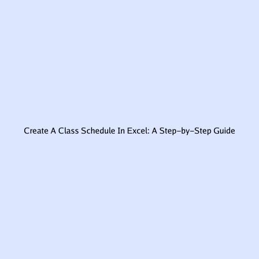 Create A Class Schedule In Excel: A Step-by-Step Guide