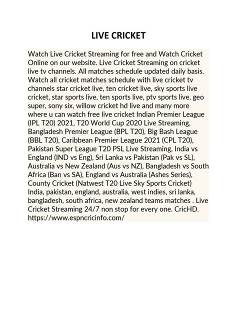 • Sports News Websites: Major sports news websites such as ESPN, BBC Sport, and others provide live scores, ball-by-ball updates, and in-depth analysis of matches. They have dedicated sections for cricket , which makes it easy to find what you are looking for.