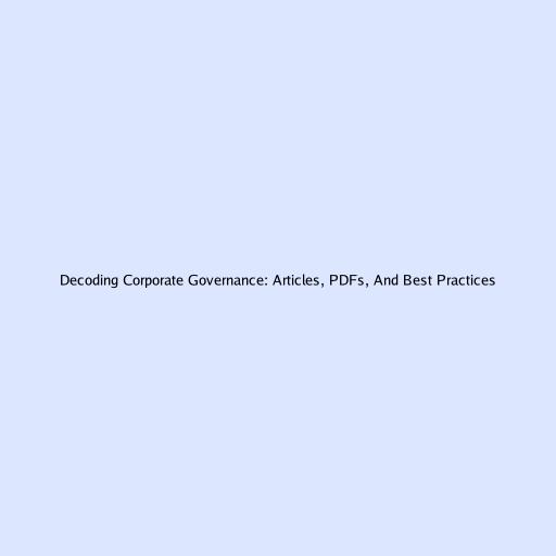 Decoding Corporate Governance: Articles, PDFs, And Best Practices