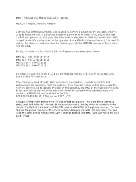 Why is the IMSI critical? It’s the primary key used by the network to authenticate and identify you. When you insert your SIM card into a phone, the IMSI is transmitted to the network, allowing it to look up your subscription details and grant you access. This is fundamental for ensuring that only authorized users can access the network and its services. However, transmitting the IMSI directly over the air can be a security risk, as it’s a static identifier. To mitigate this, mobile networks often use a TMSI (Temporary Mobile Subscriber Identity), which we’ll discuss later, to mask the IMSI during normal operations. The IMSI is generally not displayed on your phone’s interface because it’s a sensitive piece of information tied directly to your subscriber identity. Think of the IMSI as your digital passport for the mobile network. It’s the backbone of subscriber management and ensures that calls and data are correctly billed to your account. Without a valid IMSI , your SIM card wouldn’t be recognized by the network, and you wouldn’t be able to make calls or use data services. It’s the core of your mobile service identity.