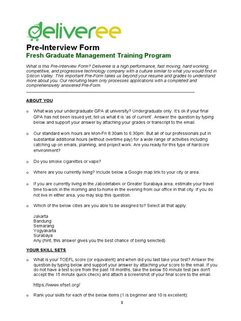 So, who exactly is eligible to apply for this fantastic program? Typically, the Deliveree Fresh Graduate Management Training Program is open to recent graduates or those with limited work experience. The ideal candidates are individuals who have recently completed their bachelor’s or master’s degree in a relevant field, such as business administration, logistics, supply chain management, or a related discipline. However, candidates from other academic backgrounds may also be considered, especially if they demonstrate a strong interest in the logistics industry and possess relevant skills or experience. The program seeks individuals with a strong academic record, a proactive attitude, and a genuine passion for the field. They should also possess excellent communication, interpersonal, and problem-solving skills, and the ability to work effectively in a team environment. The company usually looks for individuals who are eager to learn, adaptable, and willing to take on new challenges. Furthermore, candidates must be Indonesian citizens or have the legal right to work in Indonesia. Some programs might also require a minimum GPA or specific academic qualifications. It’s always best to carefully review the program’s requirements and eligibility criteria before applying to ensure you meet all the necessary qualifications. This ensures that the selected candidates are aligned with the company’s culture and values and possess the potential to become future leaders within Deliveree.