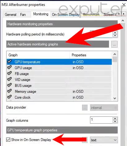 - Disable Specific Items (Optional): In the “Monitoring” tab, you’ll see a list of hardware monitoring options like GPU temperature, CPU usage, frame rate, etc. Each item has a checkbox next to it. If you only want to disable certain items from appearing in the overlay, uncheck the box next to them. Make sure the box labeled “Show in On-Screen Display” is unchecked for the items you want to hide. This gives you granular control over what’s displayed.