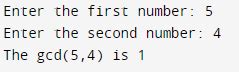 return a # When the loop finishes (b is 0), a holds the GCD