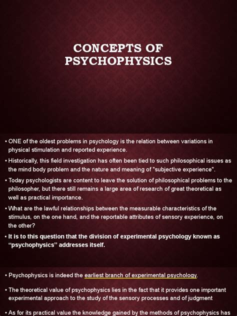 Alright, let’s switch gears and delve into the fascinating world of psychophysics . At its core, psychophysics is the scientific study of the relationship between physical stimuli and the sensations and perceptions they evoke. Basically, it’s all about how our minds interpret the physical world around us. Think about it: when you listen to music, how does the physical sound wave translate into the emotional experience you feel? Or when you look at a painting, how do the light waves entering your eyes become a sense of beauty and meaning? That’s where psychophysics comes in.