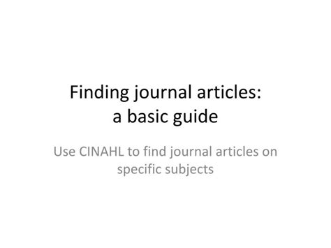 Finding Journal Articles: A Comprehensive Guide