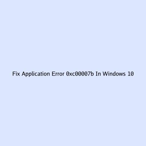 Fix Application Error 0xc00007b In Windows 10