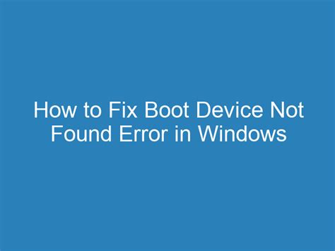 Fix Boot Device Not Found Error: Easy Guide
