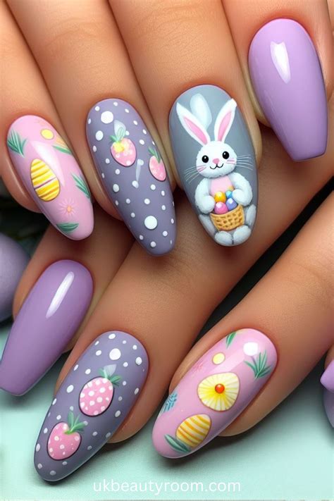 Ready to level up your nail game? Let’s explore some intermediate Easter nail art ideas that will take your designs to the next level. These ideas are a bit more complex but still achievable with a little practice and patience. First off, we have the Easter basket design . This design involves creating a woven basket effect on your nails. Start by applying a base coat and choosing a neutral color for your base. Then, using a fine detail brush and a brown polish, create criss-cross lines to mimic a woven basket. You can add a few colorful Easter eggs inside the basket for an adorable touch. Next, try the bunny face design . This design involves painting a bunny face on your nails. Start with a base coat and a light pink or white base color. Then, use a fine detail brush to create the bunny’s face. You can add black dots for eyes, a small pink triangle for the nose, and a few whiskers. It’s a bit more intricate, but the result is undeniably cute. For a touch of elegance, consider the floral wreath design . This involves creating a wreath of flowers around your nails. Start with a base coat and choose a neutral or pastel base color. Then, using a fine detail brush and various pastel colors, create small flower shapes around the edges of your nails. You can add green leaves for an extra touch of detail. Another fun idea is the ombre Easter egg design . This involves creating an ombre effect on your nails and then adding Easter egg details. Start by applying a base coat and then create an ombre effect using two or three pastel colors. Once dry, use a fine detail brush and various colors to add Easter egg designs like stripes, dots, or small patterns. You can also experiment with using nail art stickers or stencils to create more complex designs. With these intermediate ideas, you can really show off your skills and create some stunning Easter nail art. Remember to take your time, be patient, and enjoy the process. Don’t be afraid to experiment with different colors and designs. The more you practice, the better you’ll become!