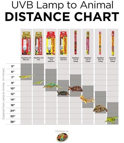 5. UV Index (UVI) or Radiant Flux: More detailed charts might include information on the actual UVI your pet will be exposed to at different distances. This is a more scientific measure of UVB intensity. You might see target UVI ranges for different species (e.g., a UVI of 3.0-4.0 for Bearded Dragons at their basking spot).