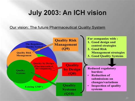 • Better Regulatory Compliance: Implementing ICH Q8 helps manufacturers meet regulatory requirements and demonstrate their commitment to quality. This can lead to faster approvals and a stronger relationship with regulatory agencies.