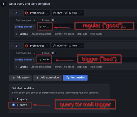 3. Set Alert Conditions: In the panel editor, go to the “Alert” tab and define the conditions that must be met for an alert to trigger. This includes setting the threshold values, evaluation frequency, and duration.