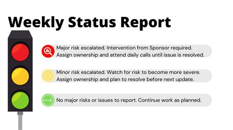 1. Input Data: The very first step is to input the relevant data for your project. Fill in each row of your template with the details for each task or project phase. Be sure to include information such as start and end dates, the assigned owner for each task, and any relevant notes or comments. The “Status” column is the most important field. This is where you’ll indicate whether each task is on track, at risk, or has encountered issues. Keep this information up-to-date and accurate to reflect the real-time project’s condition.