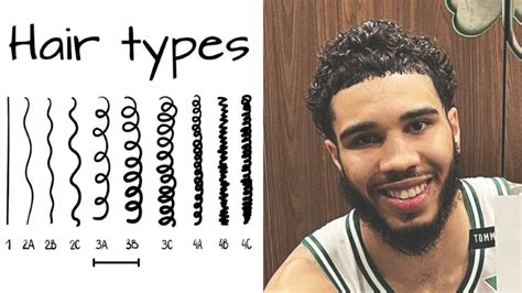 So, where does Tatum fit in? Observing Jayson Tatum’s hair , it’s clear that he possesses a hair texture that falls into the curly category, more specifically, Type 3 hair. Type 3 hair is characterized by defined curls and ringlets. It tends to be voluminous and can be prone to frizz. Within Type 3, there are subcategories like 3A, 3B, and 3C, which further describe the tightness and pattern of the curls. Tatum’s hair seems to lean towards the 3B/3C range, featuring tight, well-defined curls that add a lot of character to his overall appearance.