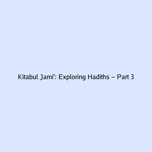 Kitabul Jami’: Exploring Hadiths - Part 3