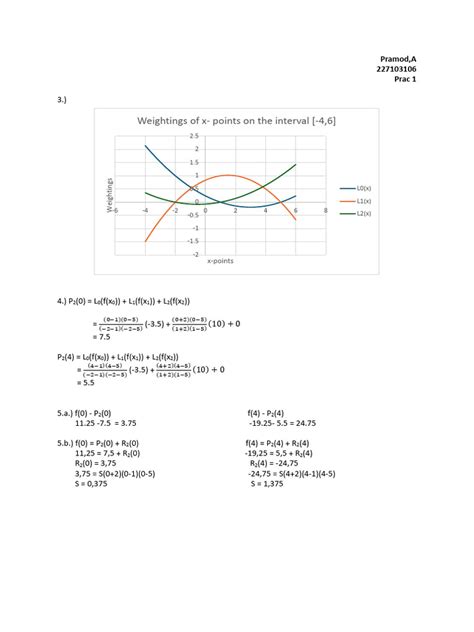 • For \(L_1(x)\) (associated with point \((x_1, y_1)\) ): \(L_1(x) = rac{(x-x_0)(x-x_2)}{(x_1-x_0)(x_1-x_2)}\) Plug in our values: \(x_0=1, x_1=3, x_2=4\) \(L_1(x) = rac{(x-1)(x-4)}{(3-1)(3-4)} = rac{(x-1)(x-4)}{(2)(-1)} = rac{(x-1)(x-4)}{-2}\)