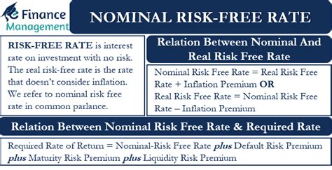 The nominal risk-free rate also plays a crucial role in determining loan rates . Lenders use the nominal risk-free rate as a starting point when setting the interest rates they charge on loans. They then add a risk premium to the nominal risk-free rate to compensate for the risk that the borrower will default on the loan. The size of the risk premium will depend on the borrower’s creditworthiness, the type of loan, and the overall economic environment. For example, a borrower with a poor credit history will typically be charged a higher interest rate than a borrower with a good credit history. Similarly, a loan that is secured by collateral will typically have a lower interest rate than a loan that is unsecured. The nominal risk-free rate is a key component of loan rates because it reflects the time value of money and the expected rate of inflation. Lenders need to be compensated for the fact that they are giving up the use of their money for a period of time, and they also need to be protected from the erosion of purchasing power due to inflation. The nominal risk-free rate provides a baseline for these considerations, and the risk premium is added on top to account for the specific risks associated with the loan. By understanding the relationship between the nominal risk-free rate and loan rates, borrowers can better assess the fairness of the interest rates they are being charged and make informed decisions about borrowing money.