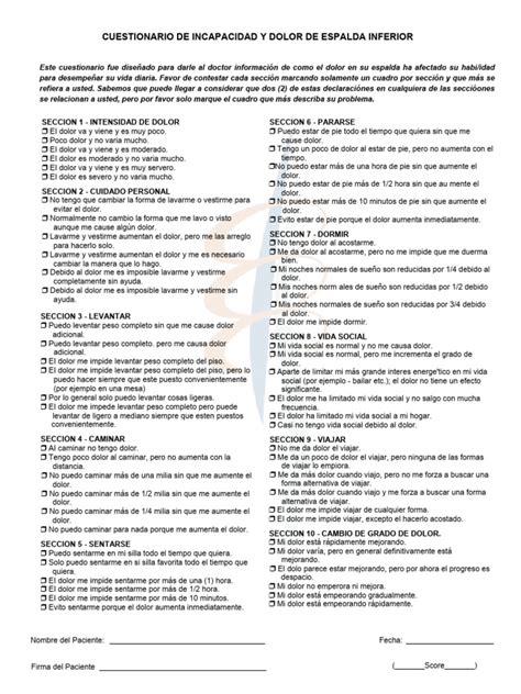 For each section, you have to choose one of six statements that best describes your current situation. The statements range from “no pain” or “no difficulty” to “the worst pain imaginable” or “I cannot do this activity.” You just tick the box that fits you best. It’s important to be honest here, guys. Don’t try to tough it out or exaggerate; just answer truthfully based on how you feel right now . Your therapist needs accurate information to help you best. Once you’ve completed all 10 sections, your answers are used to calculate a score. Each chosen statement has a point value, and these are added up. The total score is then converted into a percentage. It’s a simple but effective way to quantify your level of functional limitation. The process is designed to be quick and easy, usually taking just a few minutes to complete. Remember, the goal is to capture your current functional state, so if you’re having a good day, answer based on that; if it’s a bad day, reflect that. This nuanced approach ensures the ODI is a dynamic measure, reflecting your fluctuating experience with pain. The questions are written in plain language, avoiding complex medical jargon, making it accessible to most people. Some versions might have slight variations, but the core concept remains the same: assessing functional disability due to low back pain through a series of self-reported statements across key life domains. This method ensures a comprehensive overview, touching on physical, emotional, and social aspects influenced by your condition.