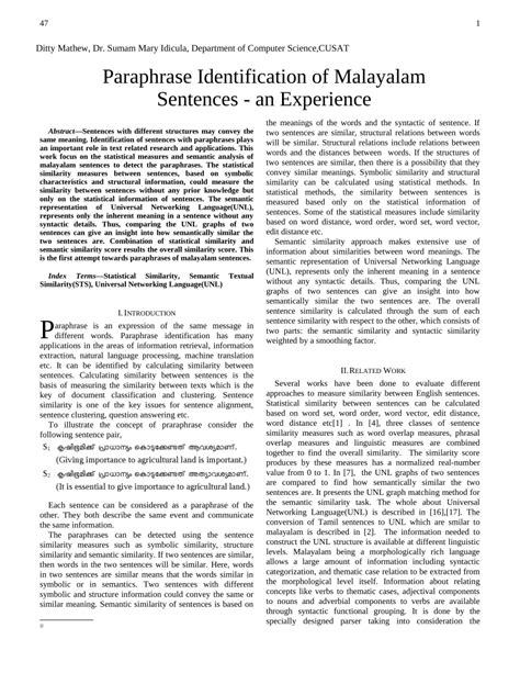 Paraphrase Meaning in Malayalam