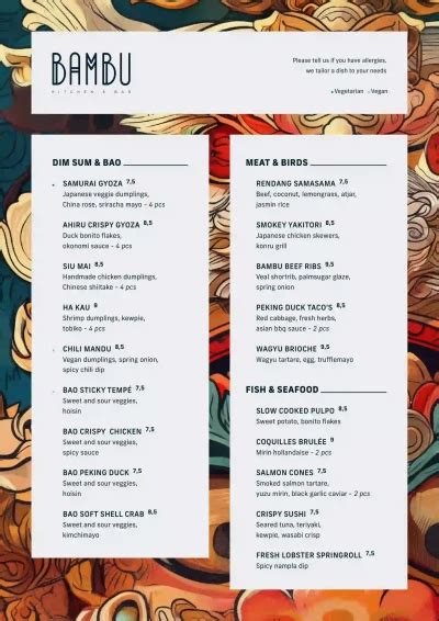 Alright, let’s get down to the good stuff: the PBambu Haarlem menu itself! This is where the real fun begins. The menu is thoughtfully organized, making it easy to navigate and find exactly what you’re craving. You’ll find sections dedicated to appetizers, soups, salads, sushi, noodles, curries, grilled dishes, and desserts. Each section is filled with tempting options, so be prepared to make some tough decisions!