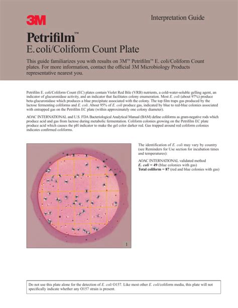 So, what exactly is Petrifilm? Well, it’s a ready-to-use culture medium system designed for enumerating bacteria in food and environmental samples. Think of it as a pre-packaged petri dish, but way more convenient! The Petrifilm Coliform Count plate, specifically, contains modified Violet Red Bile (VRB) nutrients, a cold-water-soluble gelling agent, and an indicator dye that makes it easy to identify coliform colonies. Basically, it’s a complete system that simplifies the process of detecting and counting coliforms.