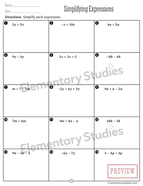 4. Order of Operations (PEMDAS/BODMAS): Always follow the order of operations when simplifying expressions: Parentheses/Brackets, Exponents/Orders, Multiplication and Division (from left to right), Addition and Subtraction (from left to right).