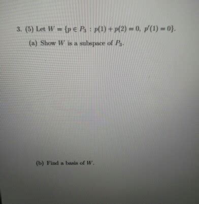 In linear algebra, determining whether a subset is a subspace of a vector space is a fundamental task. It involves verifying specific conditions that ensure the subset inherits the vector space’s structure. One common scenario involves polynomials, where we might want to know if a set of polynomials forms a subspace of the larger vector space of all polynomials of a certain degree. Let’s dive into how to prove that W is a subspace of P3 and how to find a basis for W .