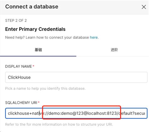 SQLAlchemy URI: This is the core of the connection string. It tells Superset how to connect to your ClickHouse database. The format is generally: