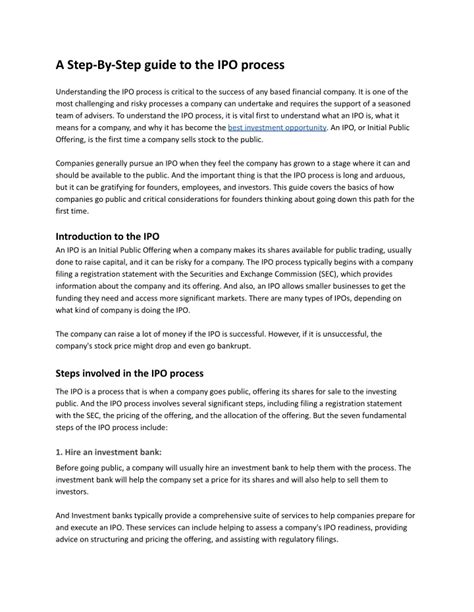 Hey guys, ever wondered what it takes for a private company to become a public powerhouse ? It’s a journey filled with excitement, meticulous planning, and a whole lot of paperwork! We’re talking about the IPO process – or Initial Public Offering – a monumental step for any company. This isn’t just about selling some shares; it’s about fundamentally changing a company’s structure, opening it up to public investment, and aiming for significant growth. Understanding the IPO process is crucial whether you’re an aspiring entrepreneur, an investor, or just curious about the world of finance. It’s a complex dance involving investment bankers, regulators, and a company’s entire executive team, all working towards that single, highly anticipated listing day . In this comprehensive guide, we’re going to break down every critical stage, giving you an insider’s look at what really happens when a company decides to go public. Trust me, it’s an fascinating ride!