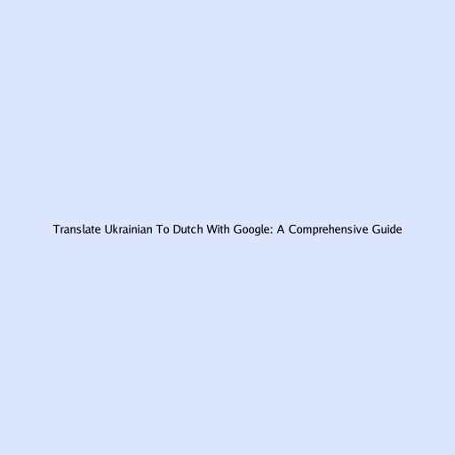 Translate Ukrainian to Dutch with Google: A Comprehensive Guide