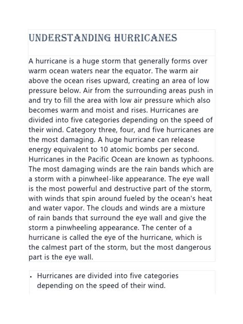 Let’s get a little more specific here. Every hurricane has a few key parts. At the heart of it all is the eye , the calmest part of the storm. The eye is often surprisingly peaceful, with clear skies and light winds, but it’s surrounded by the eyewall , which is where the most intense activity happens. The eyewall is a wall of towering thunderstorms that produce the hurricane’s strongest winds and heaviest rainfall. The spiral bands extending outward from the eyewall are called rainbands. They contain thunderstorms and can bring heavy rain and tornadoes. These bands extend outward from the storm’s center, creating a massive, sprawling system. A storm surge, which is an abnormal rise of water generated by a storm’s wind, pushes water inland. The storm surge can cause significant flooding along the coast. In addition to wind and rain, hurricanes can also spawn tornadoes, adding another layer of danger. It’s like a multi-layered danger cake! Each of these components plays a crucial role in how a hurricane develops, behaves, and impacts the areas it strikes. Understanding these parts allows us to prepare for and mitigate the effects of these powerful storms.