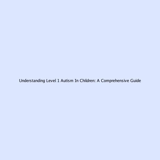 Understanding Level 1 Autism In Children: A Comprehensive Guide