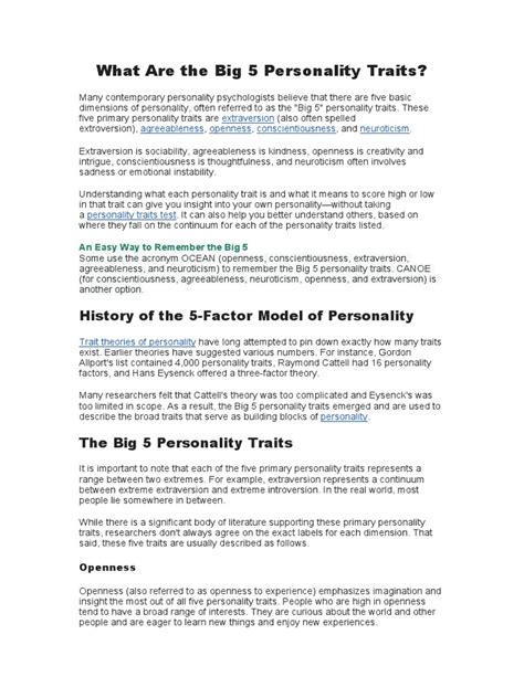 Let’s explore each of the Big Five personality traits in more detail, guys. Understanding the nuances of each factor can give you a better grasp of how they influence your thoughts, feelings, and behaviors.