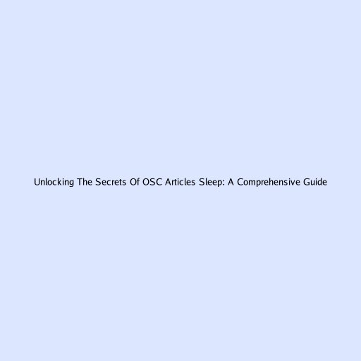 Unlocking the Secrets of OSC Articles Sleep: A Comprehensive Guide