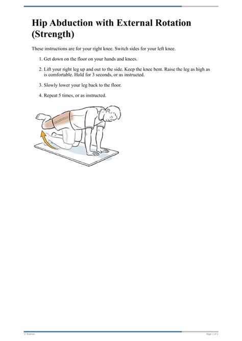 Ready to get active? Here are some awesome exercises you can do to strengthen your hip abduction and external rotation . Remember to always start with a proper warm-up before you begin and to listen to your body, stopping if you feel any pain. Let’s start with hip abduction exercises. The side leg raise is a classic. Lie on your side, with your legs straight. Lift your top leg up towards the ceiling, keeping your toes forward. Slowly lower it back down. Aim for 10-15 repetitions on each side. The banded side walk is another great exercise. Place a resistance band around your ankles. Stand with your feet shoulder-width apart and take small steps to the side, maintaining tension on the band. These are great for building hip abductor strength. Next, let’s explore external rotation exercises. The clam shell is a popular choice. Lie on your side with your knees bent and feet together. Keeping your feet touching, lift your top knee up as far as you comfortably can. Slowly lower it back down. Aim for 15-20 reps on each side. The banded external rotation is another effective exercise. Sit on a chair or bench with a resistance band around your ankles. Keeping your knees bent and feet on the ground, rotate your feet outward, away from each other. Hold for a few seconds and then slowly return to the starting position. Doing these exercises with a resistance band adds more challenge. Remember to focus on proper form and controlled movements to maximize the benefits and reduce the risk of injury. These exercises are often used in physical therapy to help people recover from injuries or correct muscle imbalances. Incorporating these exercises into your workout routine can help to improve your hip strength and stability, enhance your athletic performance, and prevent injuries. Combining these exercises can also be beneficial. For example, you might combine a side leg raise with a clam shell. This combined approach will target multiple muscle groups and help you build a well-rounded and functional strength. Consistency is key. Performing these exercises regularly will lead to significant improvements in your hip strength and mobility. By incorporating these exercises into your routine, you are taking proactive steps toward enhanced hip function and overall physical well-being. So, get started and enjoy the benefits of strong and healthy hips!