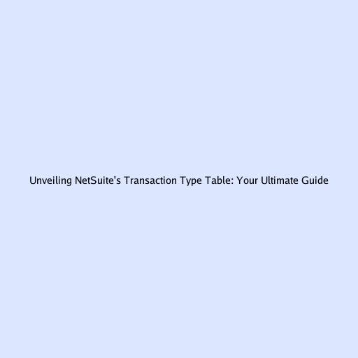 Unveiling NetSuite’s Transaction Type Table: Your Ultimate Guide