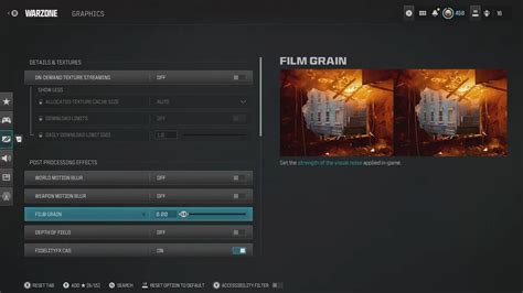 • Film Grain: This is a stylistic effect that can also reduce performance. Turn it off for a cleaner look and a slight performance boost.