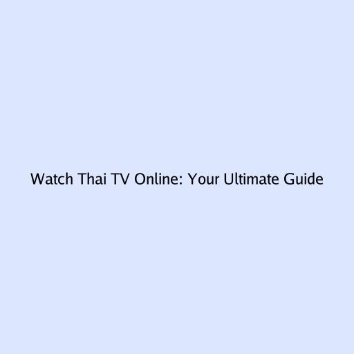 Watch Thai TV Online: Your Ultimate Guide