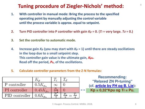 See how the values change? For a PID controller, the proportional gain is higher than for P or PI, while the integral time is longer, and a derivative time is introduced. These values are starting points, guys. They are designed to give a response with about a 25% overshoot. Often, you’ll need to fine-tune them further based on your specific process requirements and observations. The oscillation method is powerful because it directly relates the controller settings to the system’s inherent dynamic behavior. It’s a fantastic way to get a solid initial tuning, especially for processes where you can safely induce oscillations.